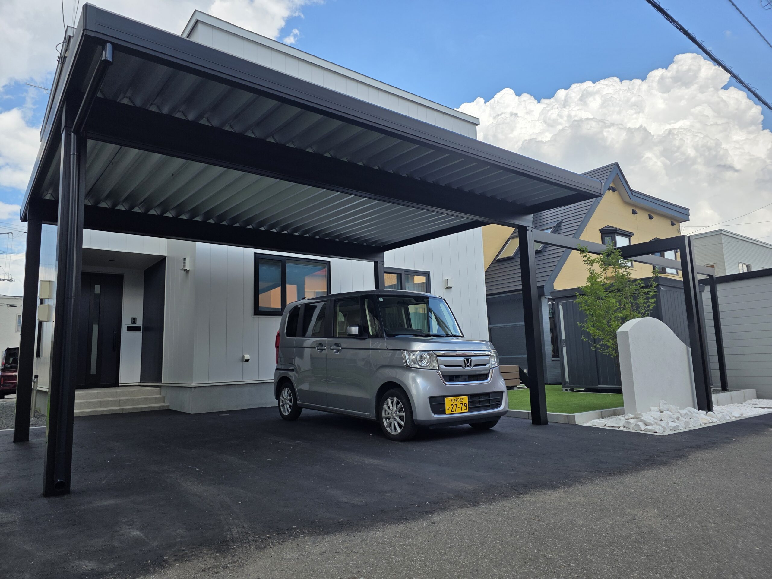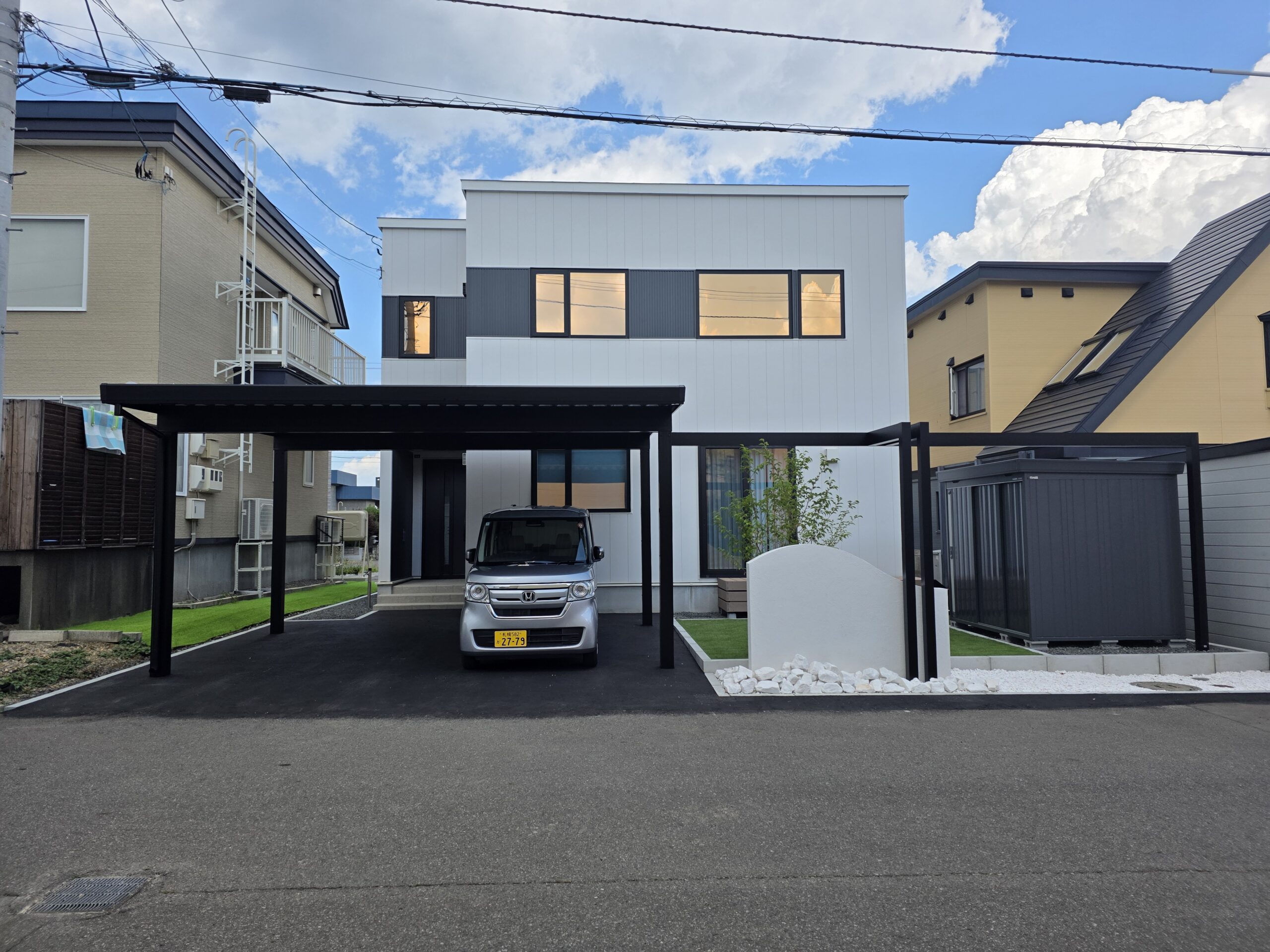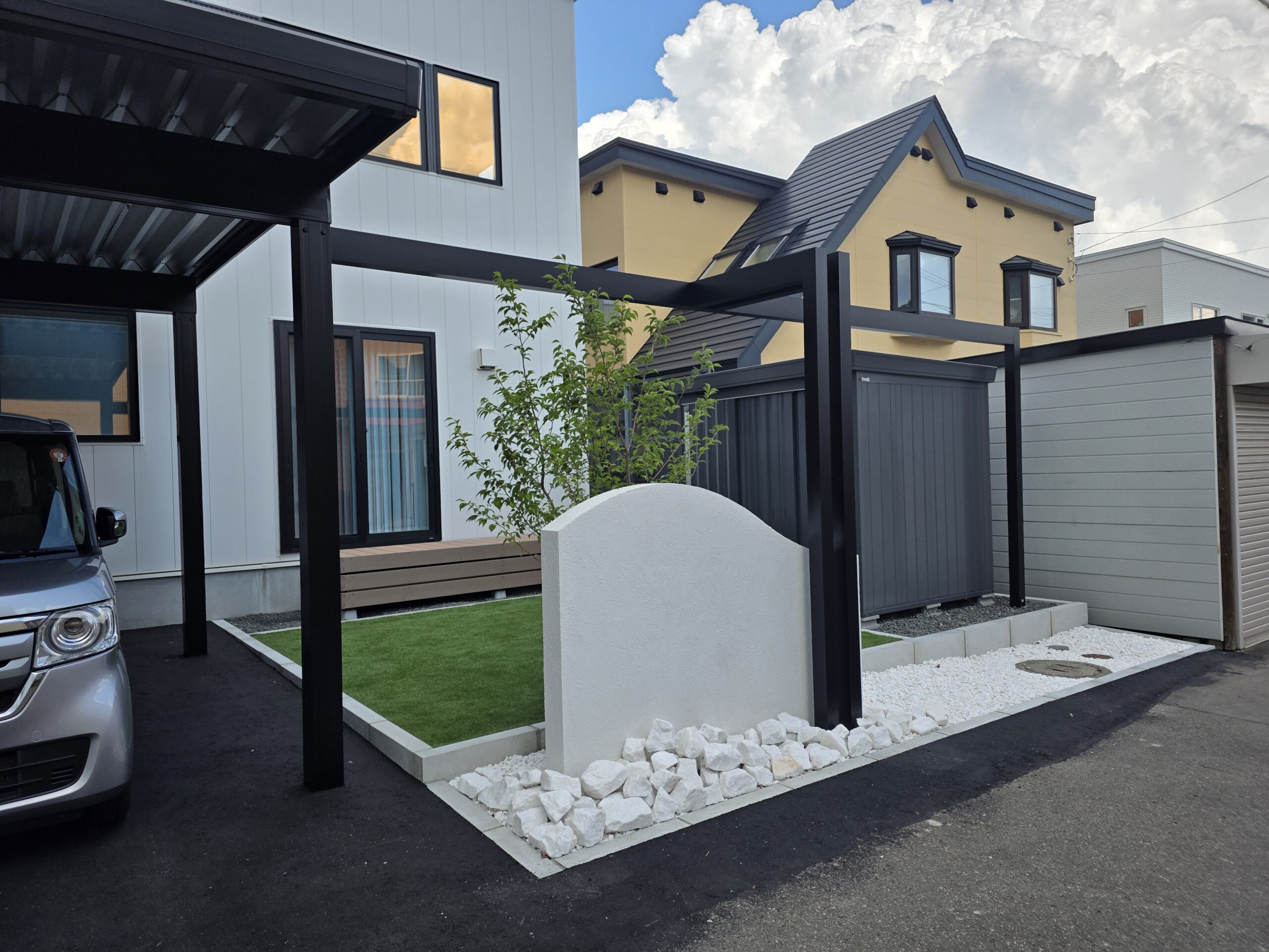 白と黒で魅せる、ミニマルモダンな外構デザイン