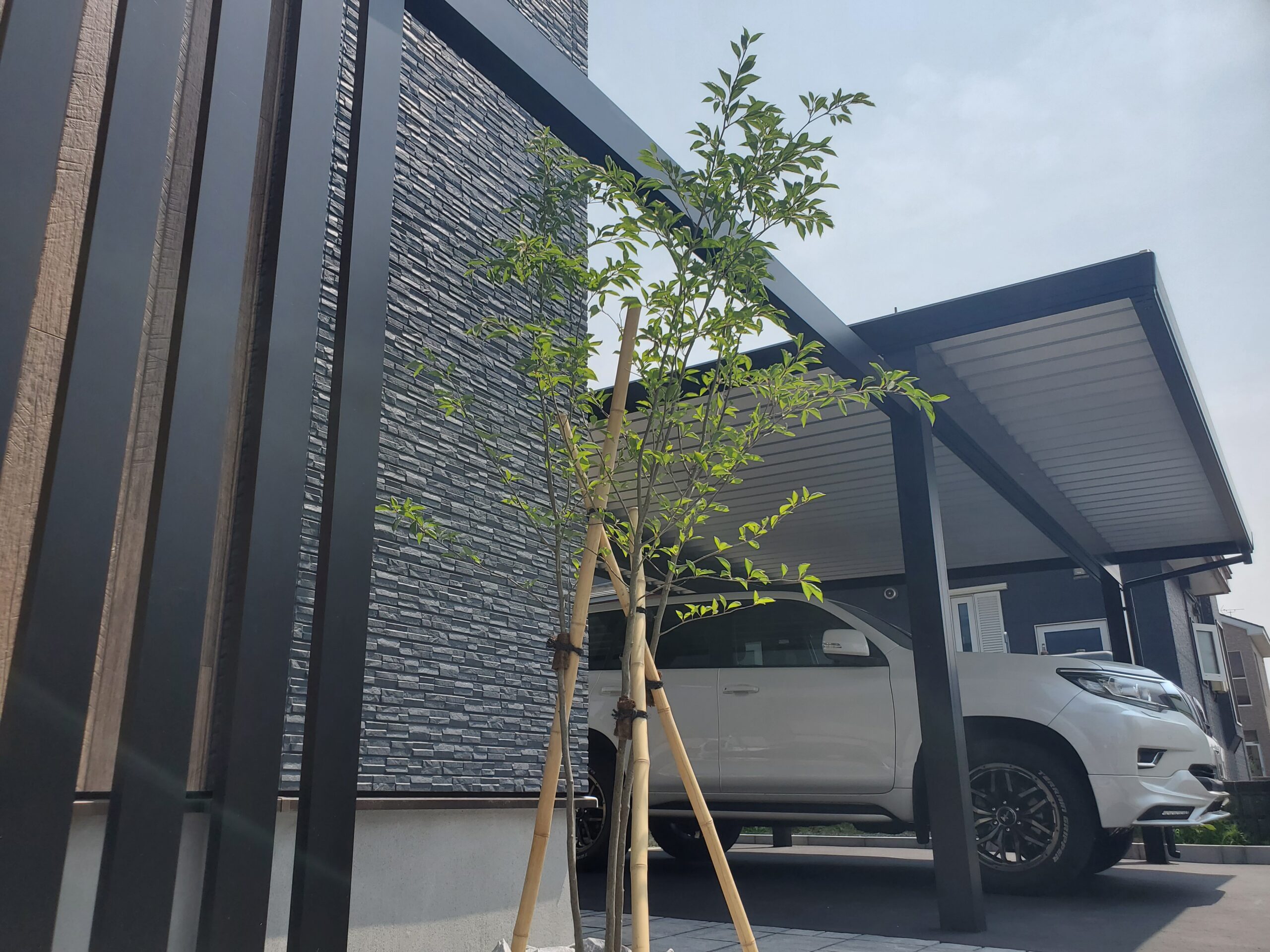 シンボルツリーが外構全体のアクセントになり、季節の移ろいを感じられる空間に。